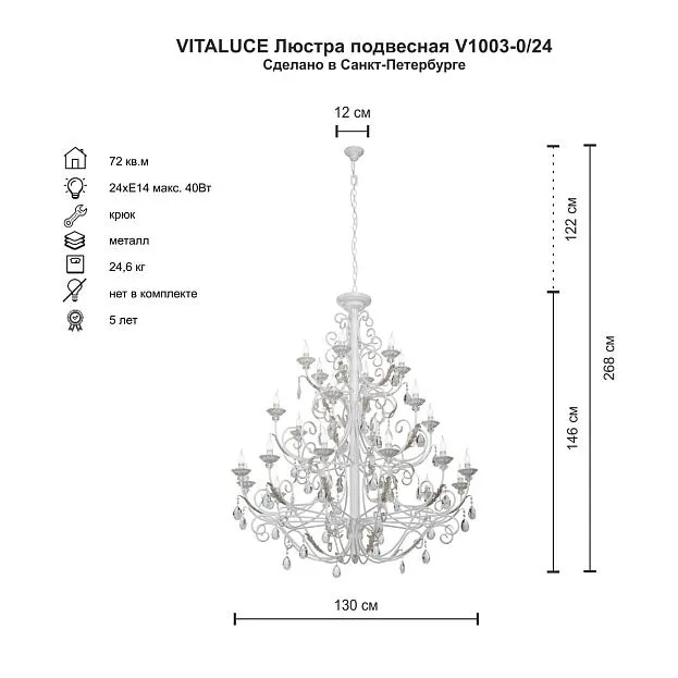 Купить Подвесная люстра Vitaluce V1003-0/24 в интернет-магазине ЛюстраНаДом со скидкой и кешбеком. Работаем с НДС, доставляем на дом и в ПВЗ. Продажа Vitaluce V1003-0/24 V1003 осуществляется с доставкой по Москве и регионам России.