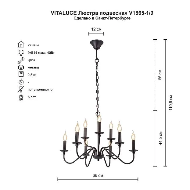 Купить Подвесная люстра Vitaluce V1865-1/9 в интернет-магазине ЛюстраНаДом со скидкой и кешбеком. Работаем с НДС, доставляем на дом и в ПВЗ. Продажа Vitaluce V1865-1/9 V1865 осуществляется с доставкой по Москве и регионам России.