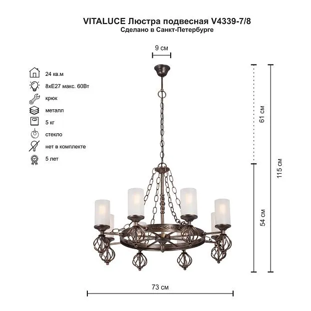 Купить Подвесная люстра Vitaluce V4339-7/8 в интернет-магазине ЛюстраНаДом со скидкой и кешбеком. Работаем с НДС, доставляем на дом и в ПВЗ. Продажа Vitaluce V4339-7/8 V4339 осуществляется с доставкой по Москве и регионам России.