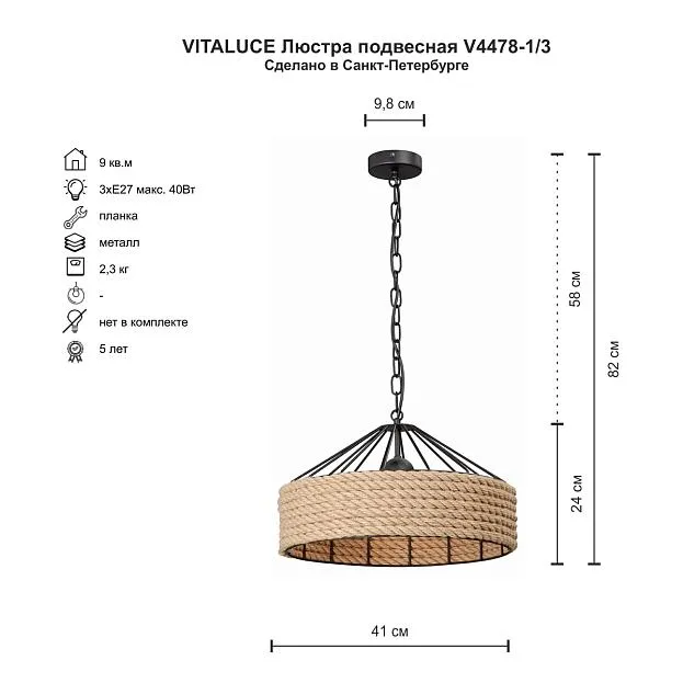Купить Подвесная люстра Vitaluce V4478-1/3 в интернет-магазине ЛюстраНаДом со скидкой и кешбеком. Работаем с НДС, доставляем на дом и в ПВЗ. Продажа Vitaluce V4478-1/3 V4478 осуществляется с доставкой по Москве и регионам России.