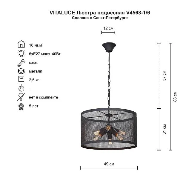Купить Подвесная люстра Vitaluce V4568-1/6 в интернет-магазине ЛюстраНаДом со скидкой и кешбеком. Работаем с НДС, доставляем на дом и в ПВЗ. Продажа Vitaluce V4568-1/6 V4568 осуществляется с доставкой по Москве и регионам России.