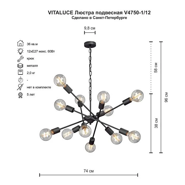 Купить Подвесная люстра Vitaluce V4750-1/12 в интернет-магазине ЛюстраНаДом со скидкой и кешбеком. Работаем с НДС, доставляем на дом и в ПВЗ. Продажа Vitaluce V4750-1/12 V4750 осуществляется с доставкой по Москве и регионам России.