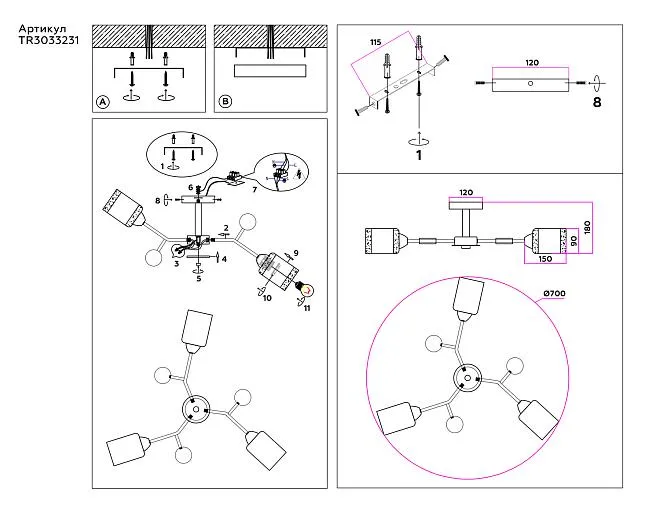 | Доп. Артикул | TR3033231/3 GR/LW/SM серый/светлое дерево/дымчатый E27*3 max 60W D700*180 |