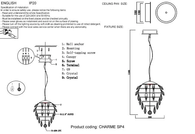 | Материал подвески | Хрусталь |