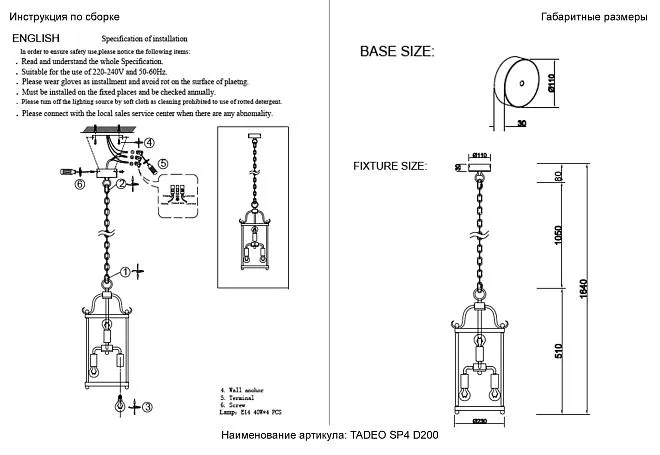 | Мощность лампочек, Вт | 40W |