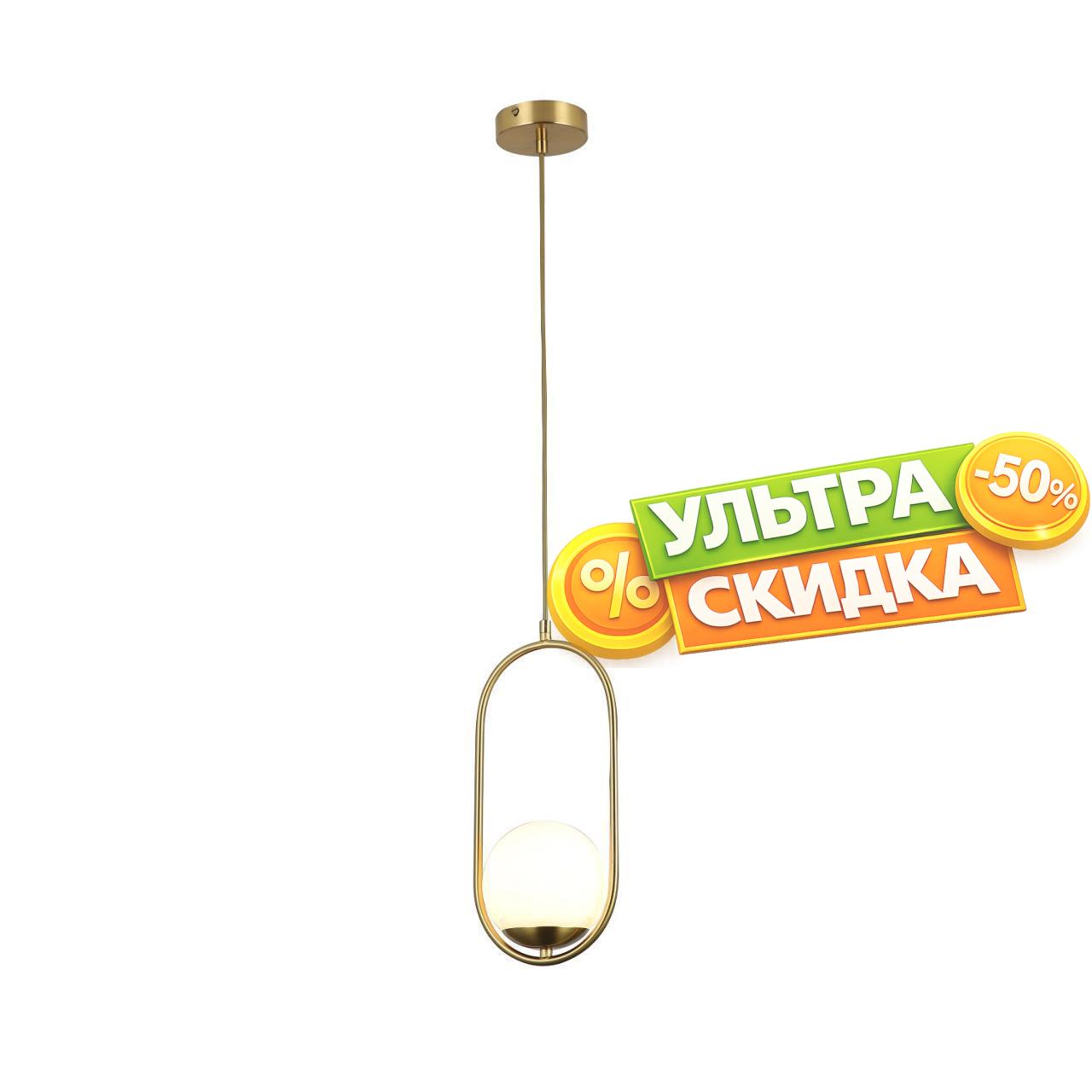 | Описание светильника | Металлический каркас цвета латуни, плафон из белого матового стекла, регулируемая высота. |