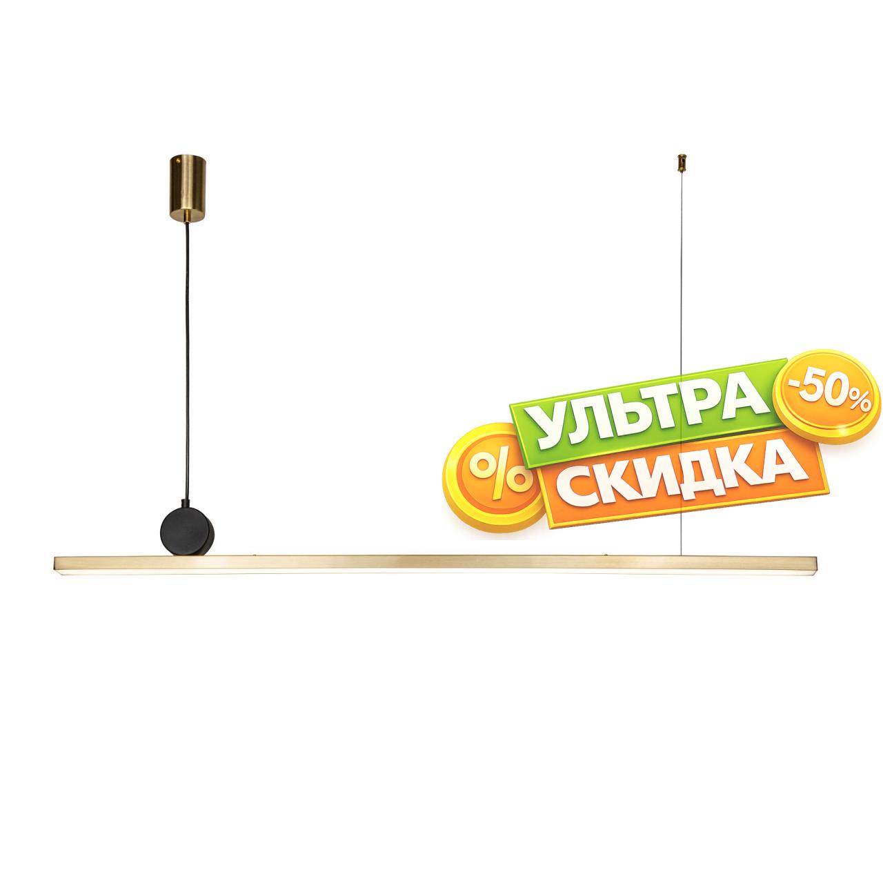 | Описание светильника | Металлический каркас золотого цвета, рассеиватель из белого акрила, круглый декоративный элемент черного цвета, часть Металлический каркаса фиксируется тросиком для баланса, регулируемая высота. |