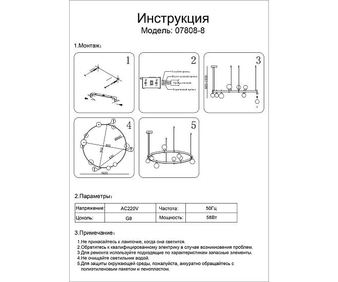 | Количество ламп/тип ламп | G9 8*7W |