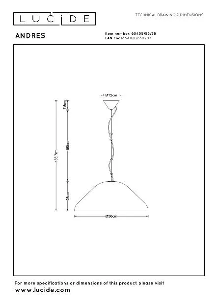 Купить Подвесной светильник Lucide ANDRES 65405/56/38 в интернет-магазине ЛюстраНаДом со скидкой и кешбеком. Работаем с НДС, доставляем на дом и в ПВЗ. Продажа Lucide 65405/56/38 ANDRES осуществляется с доставкой по Москве и регионам России бесплатно от 5000 р.