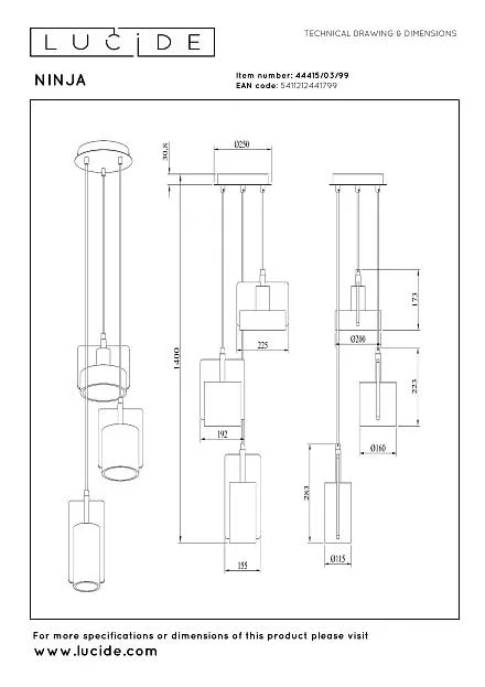 Купить Подвесной светильник Lucide NINJA 44415/03/99 в интернет-магазине ЛюстраНаДом со скидкой и кешбеком. Работаем с НДС, доставляем на дом и в ПВЗ. Продажа Lucide 44415/03/99 NINJA осуществляется с доставкой по Москве и регионам России бесплатно от 5000 р.