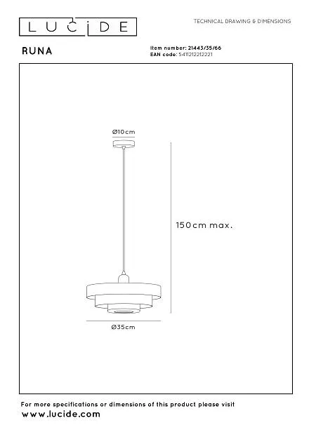 Купить Подвесной светильник Lucide RUNA 21443/35/66 в интернет-магазине ЛюстраНаДом со скидкой и кешбеком. Работаем с НДС, доставляем на дом и в ПВЗ. Продажа Lucide 21443/35/66 RUNA осуществляется с доставкой по Москве и регионам России бесплатно от 5000 р.