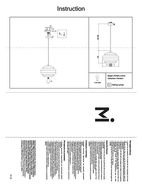 | Диаметр абажура (мм) | 304 |