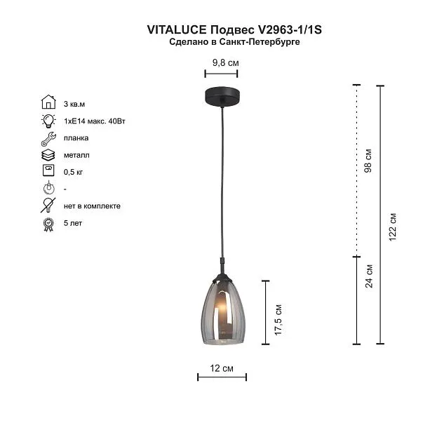 Купить Подвесной светильник Vitaluce V2963-1/1S в интернет-магазине ЛюстраНаДом со скидкой и кешбеком. Работаем с НДС, доставляем на дом и в ПВЗ. Продажа Vitaluce V2963-1/1S V2963 осуществляется с доставкой по Москве и регионам России.