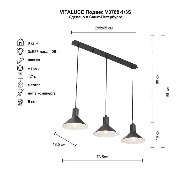 Купить Подвесной светильник Vitaluce V3788-1/3S в интернет-магазине ЛюстраНаДом со скидкой и кешбеком. Работаем с НДС, доставляем на дом и в ПВЗ. Продажа Vitaluce V3788-1/3S осуществляется с доставкой по Москве и регионам России.