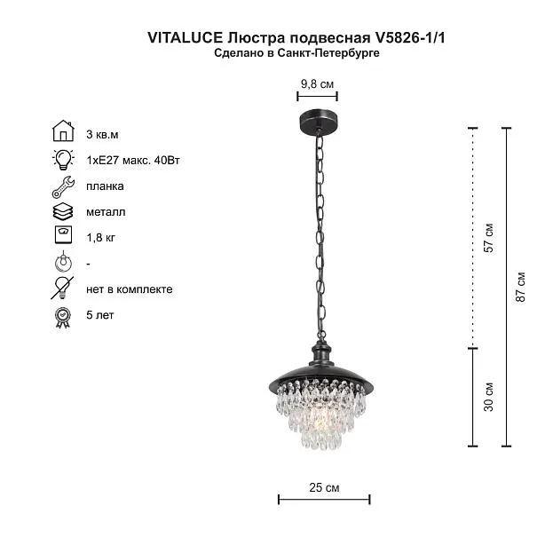 Купить Подвесной светильник Vitaluce V5826-1/1 в интернет-магазине ЛюстраНаДом со скидкой и кешбеком. Работаем с НДС, доставляем на дом и в ПВЗ. Продажа Vitaluce V5826-1/1 V5826 осуществляется с доставкой по Москве и регионам России.