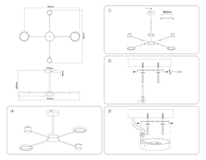 | Высота люстры с тросом, мм | 300 |