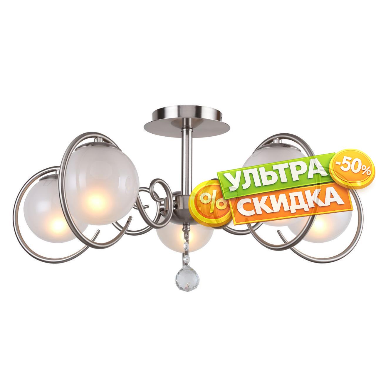 | Описание светильника | Металлический каркас цвета никель, плафоны из белого матового стекла, декор из прозрачного хрусталя. |