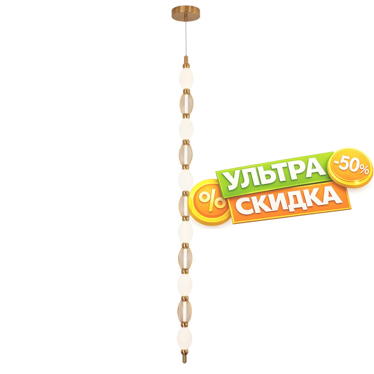 | Описание светильника | Металлический каркас цвета латунь, гибкая силиконовая трубка со встроенной лентой LED и нанизанными плафонами из белого акрила и декоративной металлической сетки. Варианты крепления |