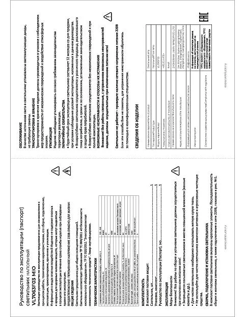 | Тип лампочки (основной) | Накаливания |