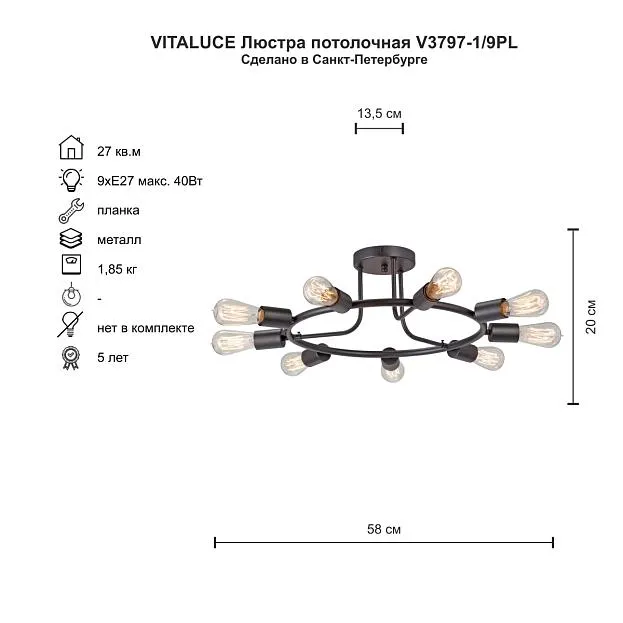 Купить Потолочная люстра Vitaluce V3797-1/9PL в интернет-магазине ЛюстраНаДом со скидкой и кешбеком. Работаем с НДС, доставляем на дом и в ПВЗ. Продажа Vitaluce V3797-1/9PL осуществляется с доставкой по Москве и регионам России.