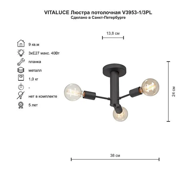 Купить Потолочная люстра Vitaluce V3953-1/3PL в интернет-магазине ЛюстраНаДом со скидкой и кешбеком. Работаем с НДС, доставляем на дом и в ПВЗ. Продажа Vitaluce V3953-1/3PL V3953 осуществляется с доставкой по Москве и регионам России.