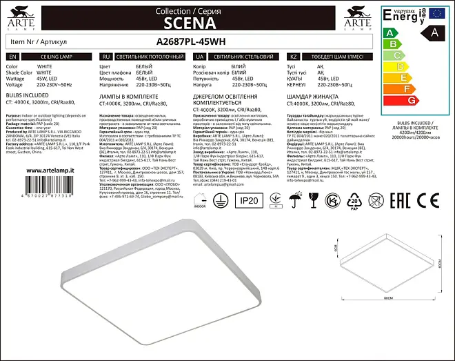 Купить Потолочный светильник Arte Lamp SCENA A2687PL-45WH в интернет-магазине ЛюстраНаДом со скидкой и кешбеком. Работаем с НДС, доставляем на дом и в ПВЗ. Продажа Arte Lamp A2687PL-45WH SCENA осуществляется с доставкой по Москве и регионам России бесплатно от 5000 р.
