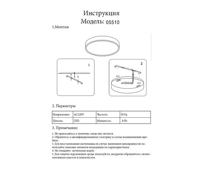 | Цвет плафона | Белый |