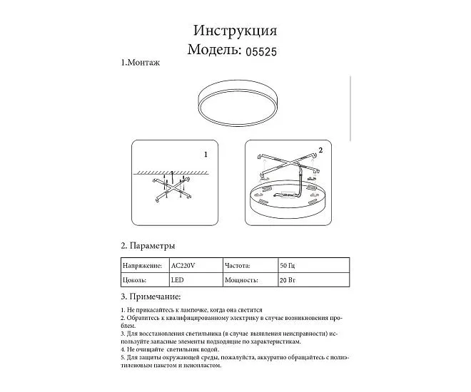 | Мощность лампы, W | 20 |