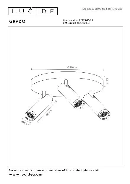 Купить Потолочный светильник Lucide GRADO 22974/13/30 в интернет-магазине ЛюстраНаДом со скидкой и кешбеком. Работаем с НДС, доставляем на дом и в ПВЗ. Продажа Lucide 22974/13/30 GRADO осуществляется с доставкой по Москве и регионам России бесплатно от 5000 р.