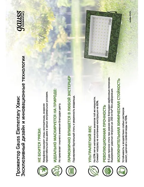 Прожектор Elementary хаки 150Вт 13500Лм 6500К IP65 Gauss GFD007