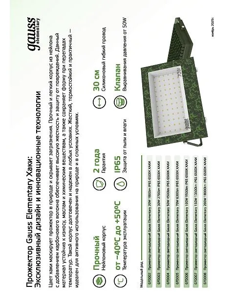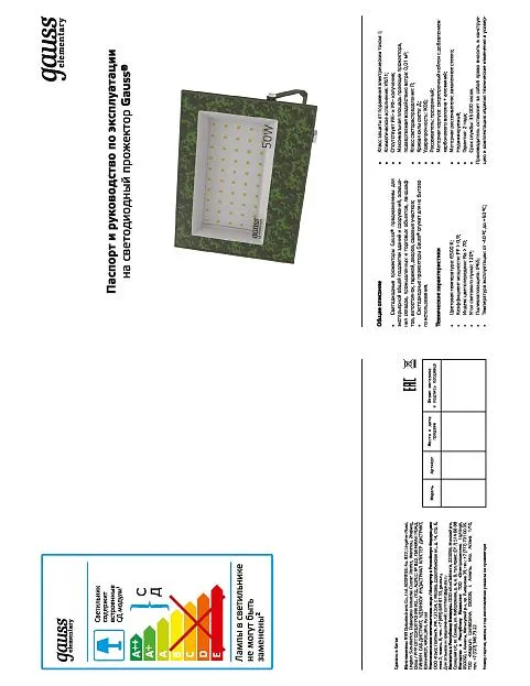 Купить Прожектор Gauss Elementary хаки 50Вт 4500Лм 6500К IP65 в интернет-магазине ЛюстраНаДом со скидкой и кешбеком. Работаем с НДС, доставляем на дом и в ПВЗ. Продажа Gauss GFD004 осуществляется с доставкой по Москве и регионам России бесплатно от 5000 р.
