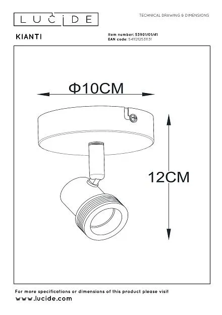 Купить Спот Lucide KIANTI 53901/01/41 в интернет-магазине ЛюстраНаДом со скидкой и кешбеком. Работаем с НДС, доставляем на дом и в ПВЗ. Продажа Lucide 53901/01/41 KIANTI осуществляется с доставкой по Москве и регионам России бесплатно от 5000 р.