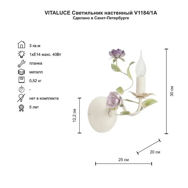 Купить Светильник настенный Vitaluce V1184/1A в интернет-магазине ЛюстраНаДом со скидкой и кешбеком. Работаем с НДС, доставляем на дом и в ПВЗ. Продажа Vitaluce V1184/1A V1184 осуществляется с доставкой по Москве и регионам России.