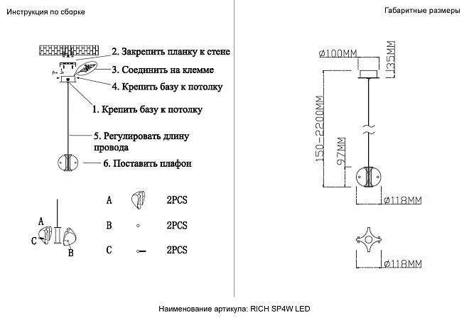 | Высота с цепью/тросом, мм | 150-2200 |