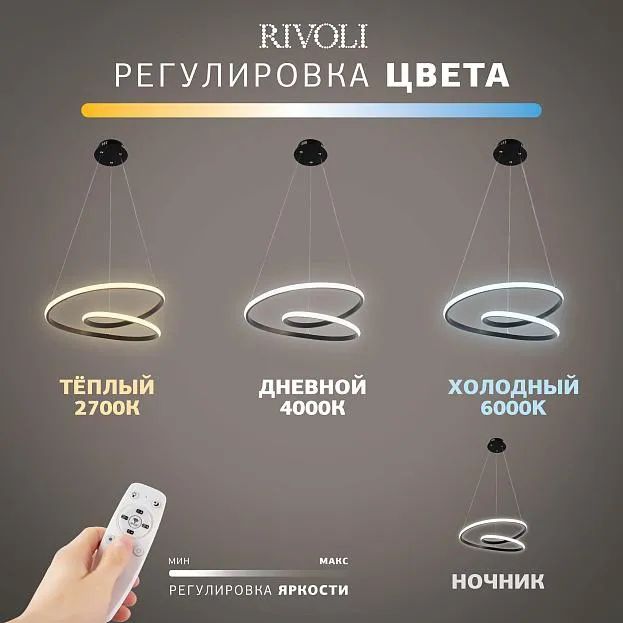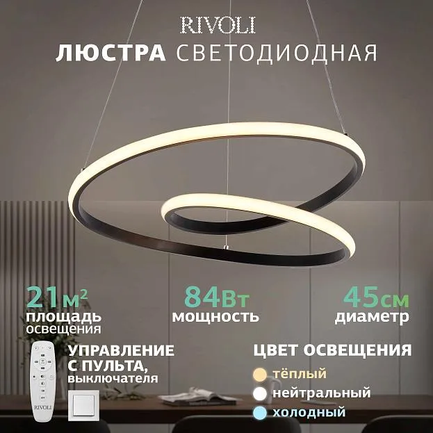 Купить Светильник подвесной (подвес) Rivoli Nelly 6143-103 LED 84 Вт 3000 - 6000 К с пультом в интернет-магазине ЛюстраНаДом со скидкой и кешбеком. Работаем с НДС, доставляем на дом и в ПВЗ. Продажа Rivoli 6143-103 Nelly осуществляется с доставкой по Москве и регионам России бесплатно от 5000 р.
