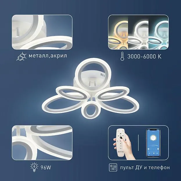 Купить Светильник потолочный Rivoli Kora 6048-106 светодиодный с пультом 96 Вт 3000К-6000К LED модерн в интернет-магазине ЛюстраНаДом со скидкой и кешбеком. Работаем с НДС, доставляем на дом и в ПВЗ. Продажа Rivoli 6048-106 Kora осуществляется с доставкой по Москве и регионам России бесплатно от 5000 р.