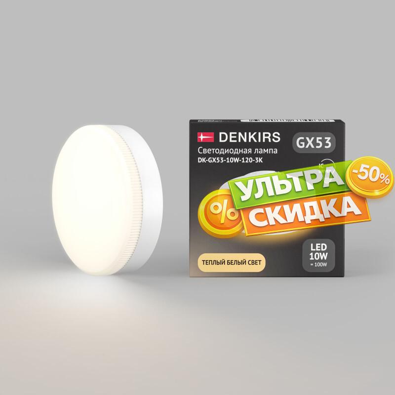 Купить Светодиодная лампа GX53 10 Вт IC 3000K 800 лм 120° 175–265 В Denkirs DK-GX53-10W-120-3K в интернет-магазине ЛюстраНаДом со скидкой и кешбеком. Работаем с НДС, доставляем на дом и в ПВЗ. Продажа Denkirs DK-GX53-10W-120-3K GX53 осуществляется с доставкой по Москве и регионам России бесплатно от 5000 р.