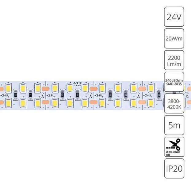 Купить Светодиодная лента 24V 19,2W/m 4000К 5м Arte Lamp A2424015-02-4K TAPE в интернет-магазине ЛюстраНаДом со скидкой и кешбеком. Работаем с НДС, доставляем на дом и в ПВЗ. Продажа Arte Lamp A2424015-02-4K TAPE осуществляется с доставкой по Москве и регионам России.