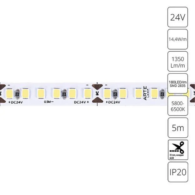 Купить Светодиодная лента 24V 9,6W/m 6000К 5м Arte Lamp A2418008-03-6K TAPE в интернет-магазине ЛюстраНаДом со скидкой и кешбеком. Работаем с НДС, доставляем на дом и в ПВЗ. Продажа Arte Lamp A2418008-03-6K TAPE осуществляется с доставкой по Москве и регионам России.