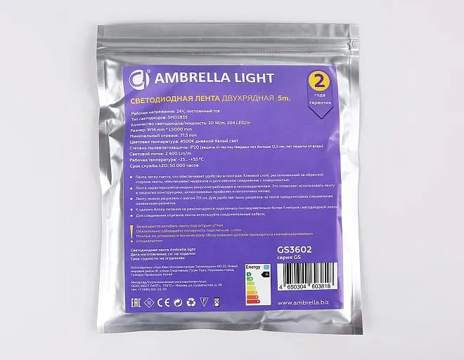 Купить Светодиодная лента двухрядная Ambrella Light GS3602 LED Strip 24V в интернет-магазине ЛюстраНаДом со скидкой и кешбеком. Работаем с НДС, доставляем на дом и в ПВЗ. Продажа Ambrella light GS3602 GS осуществляется с доставкой по Москве и регионам России.