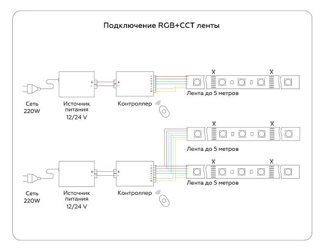 | Цветовая температура, К | RGB+CCT 3000-6500 |