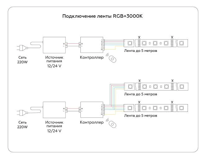 | Цветовая температура, К | RGB+3000K теплый белый свет |