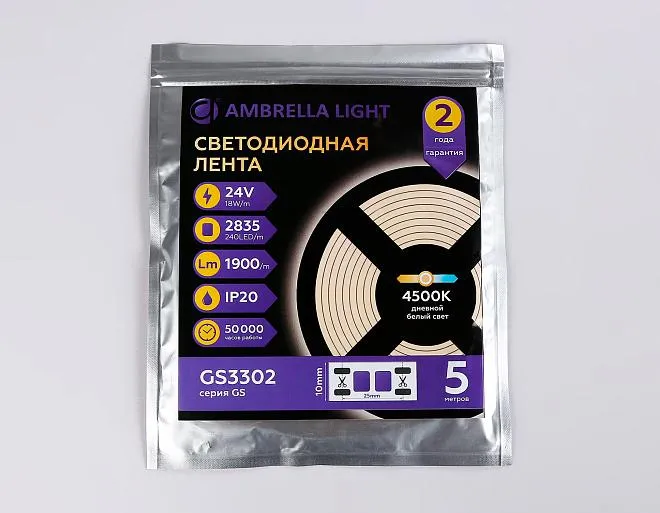 Купить Светодиодная лента 4500K 18W/m 5m Ambrella light GS3302 LED STRIP 24V в интернет-магазине ЛюстраНаДом со скидкой и кешбеком. Работаем с НДС, доставляем на дом и в ПВЗ. Продажа Ambrella light GS3302 GS осуществляется с доставкой по Москве и регионам России.