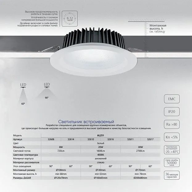 | Товарная категория | Светильник встраиваемый светодиодный |