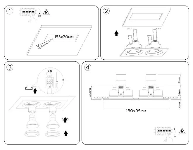 | Рекомендуемый тип лампы | MR16 GU5.3 LED max 12 Вт |