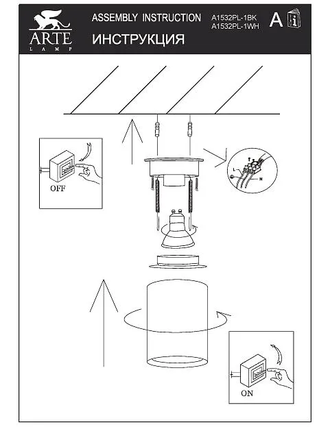 | Место монтажа | На потолок |