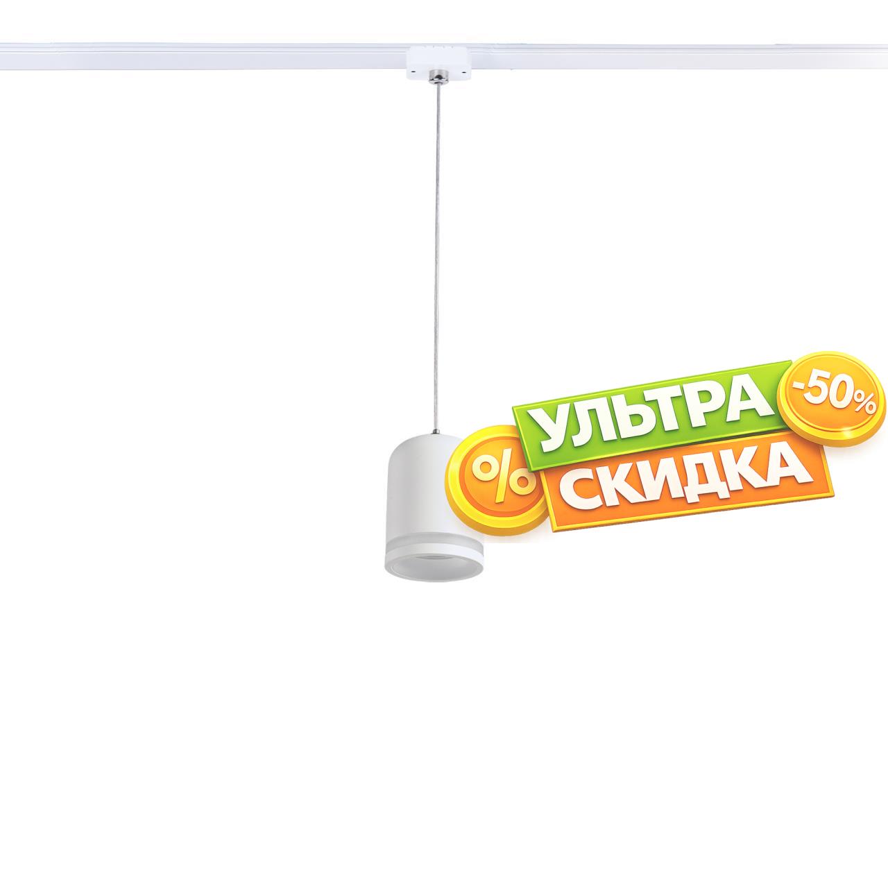 | Описание светильника | подвесной светильник на шинопровод белого цвета с закругленным конусообразным плафоном, в который встроено декоративное акриловое кольцо. |