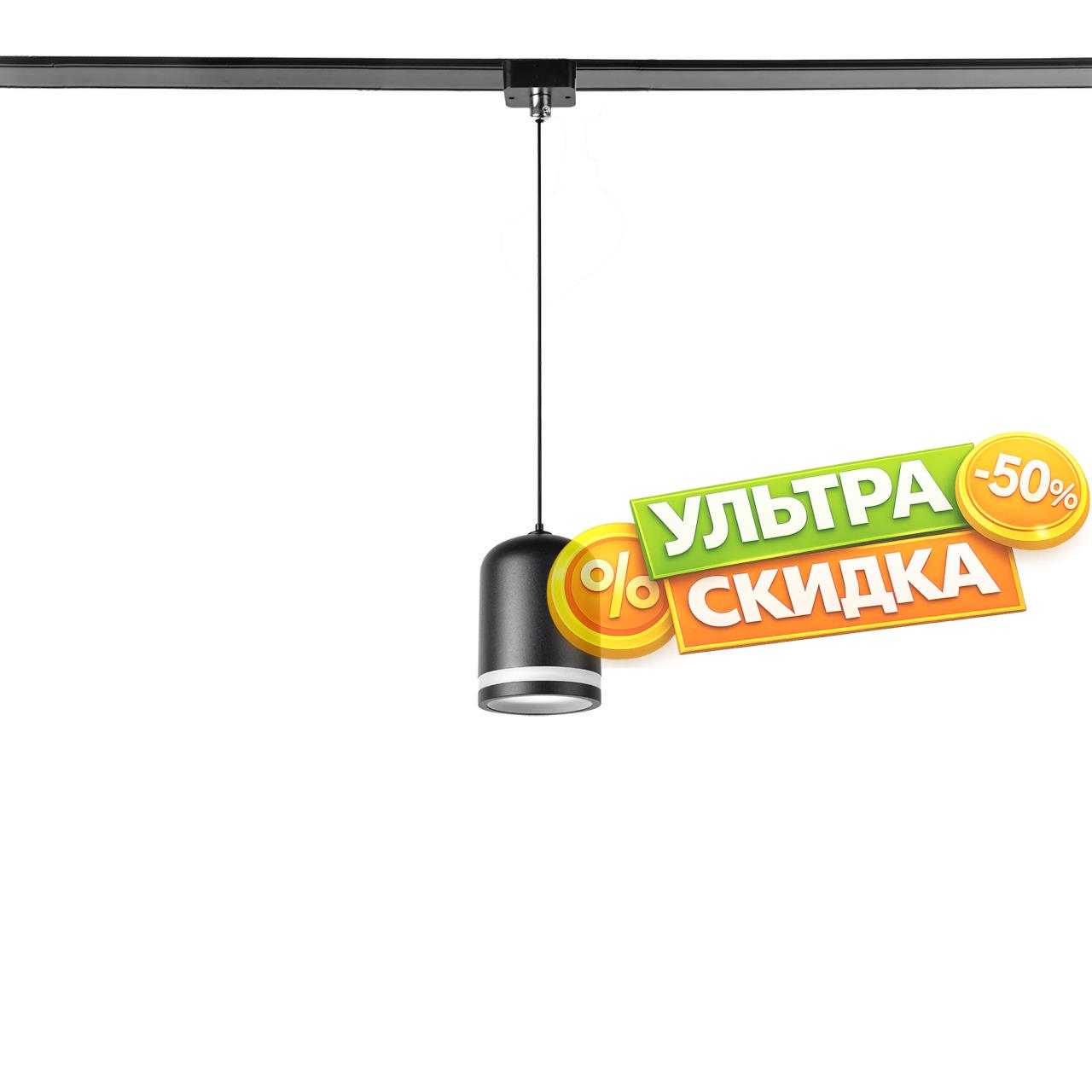| Описание светильника | подвесной светильник на шинопровод черного цвета с закругленным конусообразным плафоном, в который встроено декоративное акриловое кольцо. |