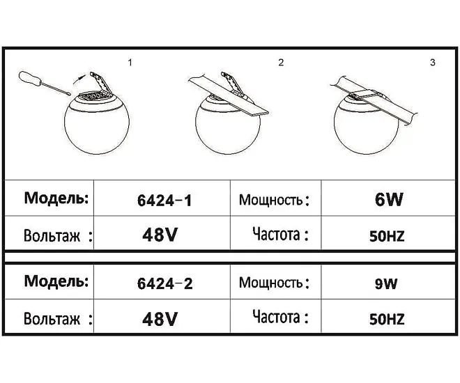 | Мощность лампы, W | 6 |