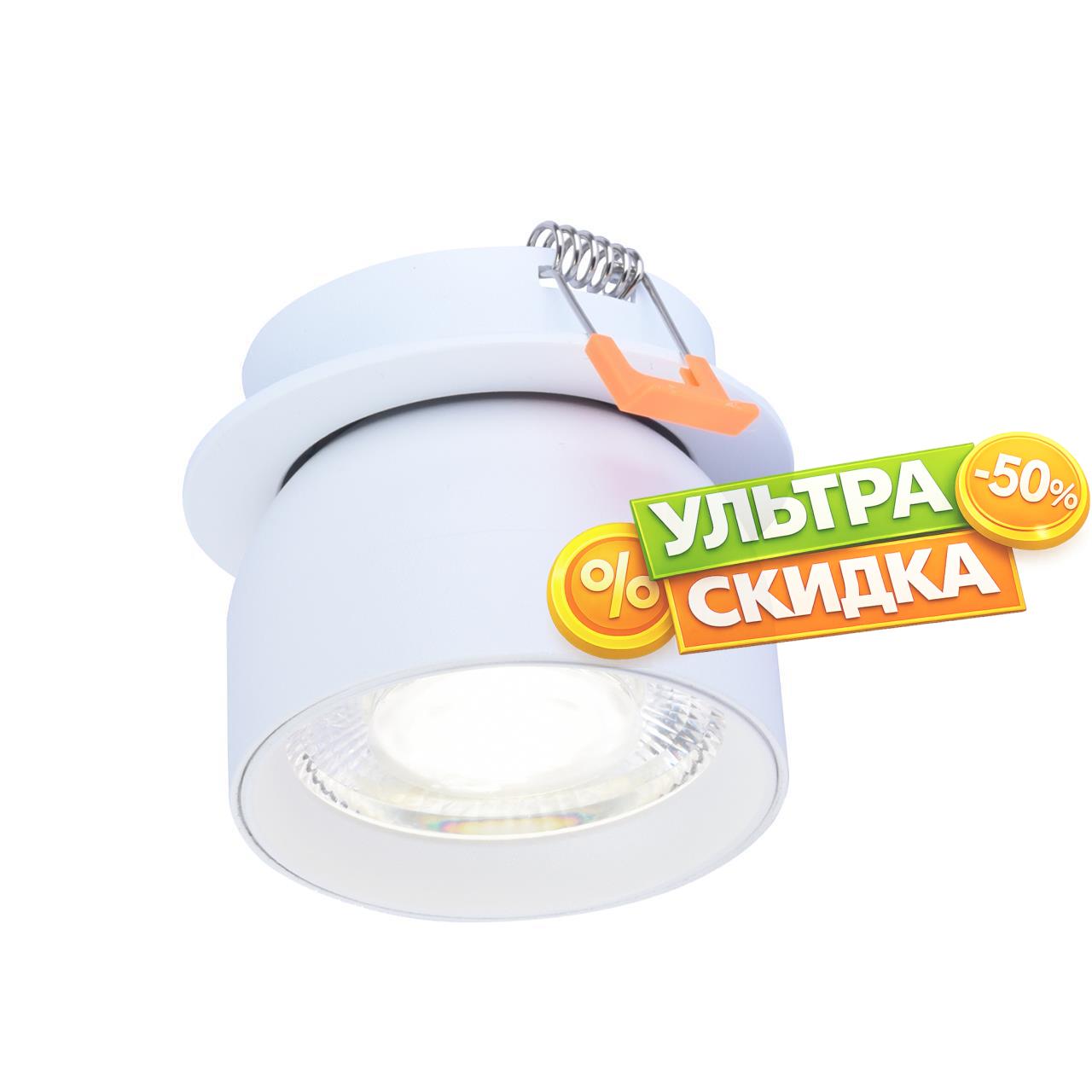 | Описание светильника | Каркас полусферической формы белого матового цвета, поворотный плафон со встроенным модулем LED, смещен вглубь плафона для создания более направленного потока света. |